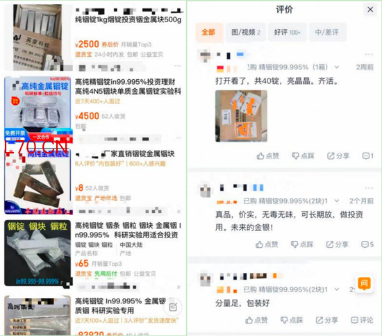 记者注意到,网购市场已出现的专门面向投资需求的铟锭销售渠道主要分为两类。