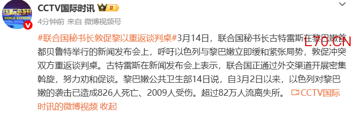 美国务卿将主持以黎大使会谈 讨论停火可能性等议题