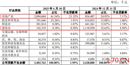 2024年房地产业不良率由1.36%大幅升至7.17%,2025年上半年飙升至21.32%,不良贷款余额达到20.95亿元,远高于其他行业。青岛农商行对此解释,房地产贷款余额、不良率激增是个别贷款风险暴露形成不良,正在处置过程中。房地产业贷款规模在持续压降之中,占比也由2024年末的7.04%降至2025年上半年末的5.62%。