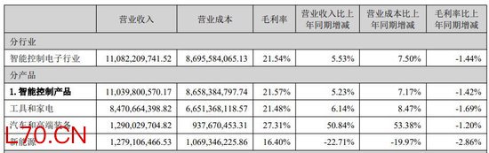 去年,“汽车和高端装备”板块扛起了拓邦股份增长的大旗,板块整体收入达到12.90亿元,同比大幅增长50.84%。这一板块涵盖了汽车、机器人、工业及AI数据中心等多个新兴领域,成为拓邦股份2025年度的增长引擎。