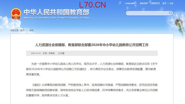 为进一步提高中小学幼儿园选人用人科学化、规范化水平,人力资源社会保障部、教育部联合印发《关于做好2026年中小学幼儿园教师公开招聘工作的通知》(以下简称《通知》),助力高校毕业生就业,统筹优化教师资源配置,推动教育高质量发展。其中,《通知》提到,各地要科学合理设置招聘年龄条件,将中小学幼儿园教师招聘年龄条件放宽至38周岁(含)以下。