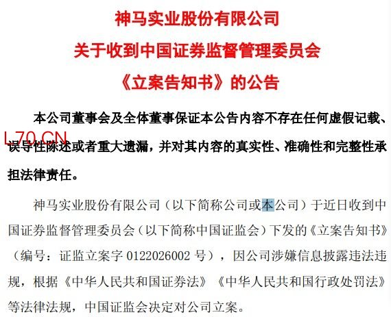 同日,神马股份也公告,于近日收到中国证监会下发的《立案告知书》,因公司涉嫌信息披露违法违规,中国证监会决定对公司立案。
